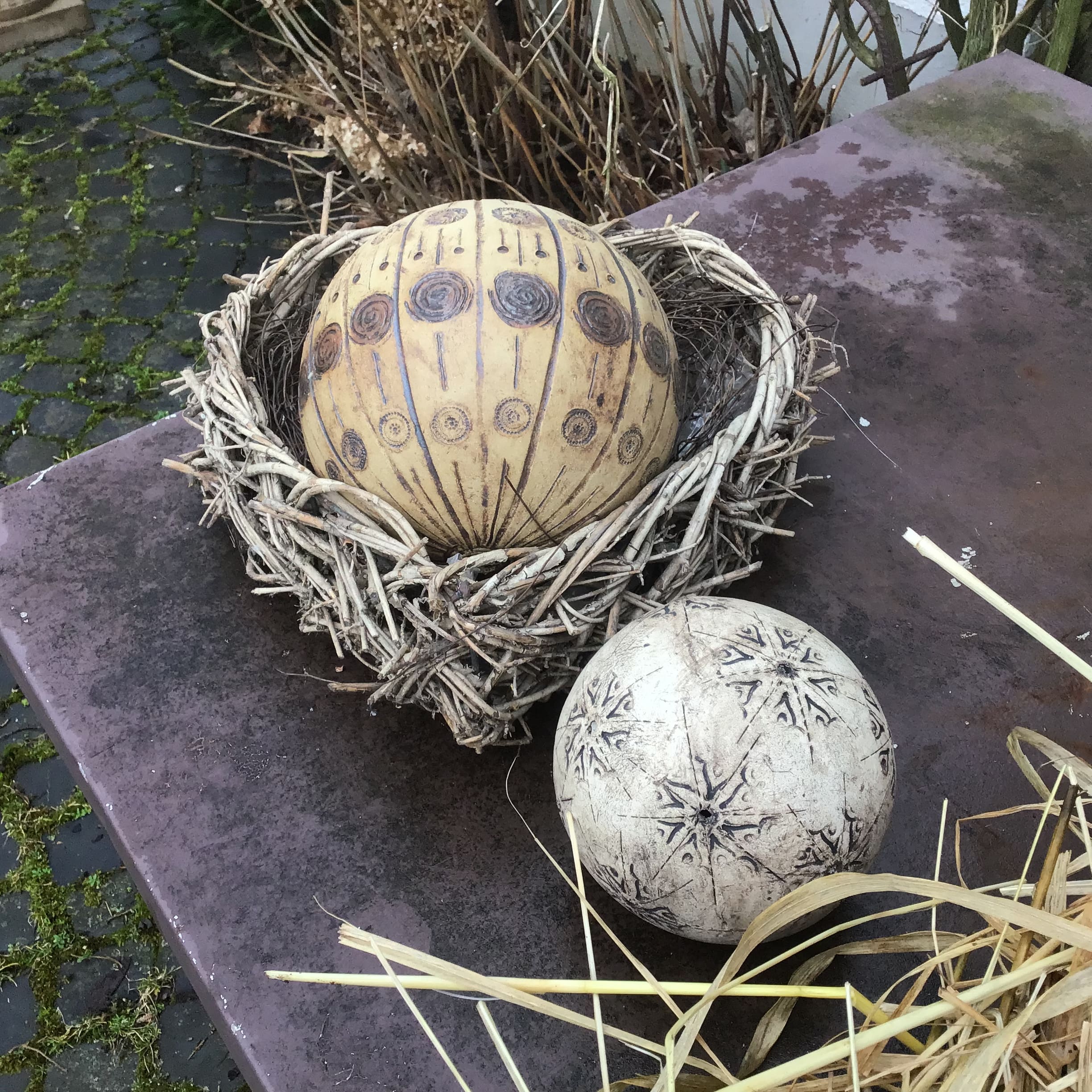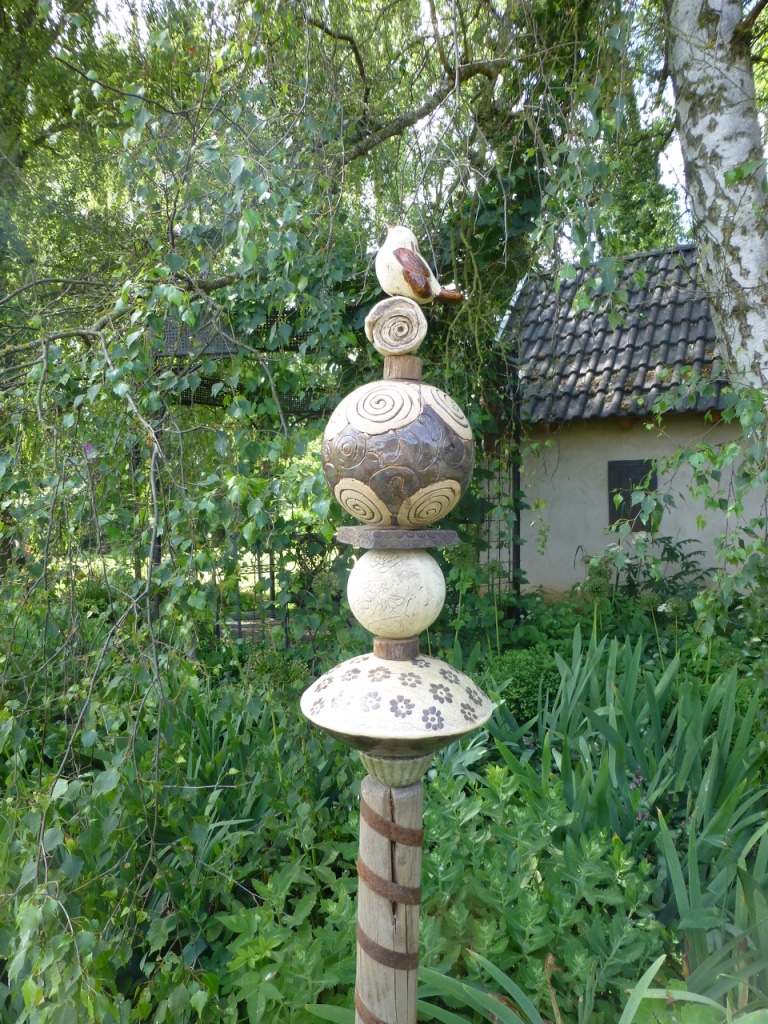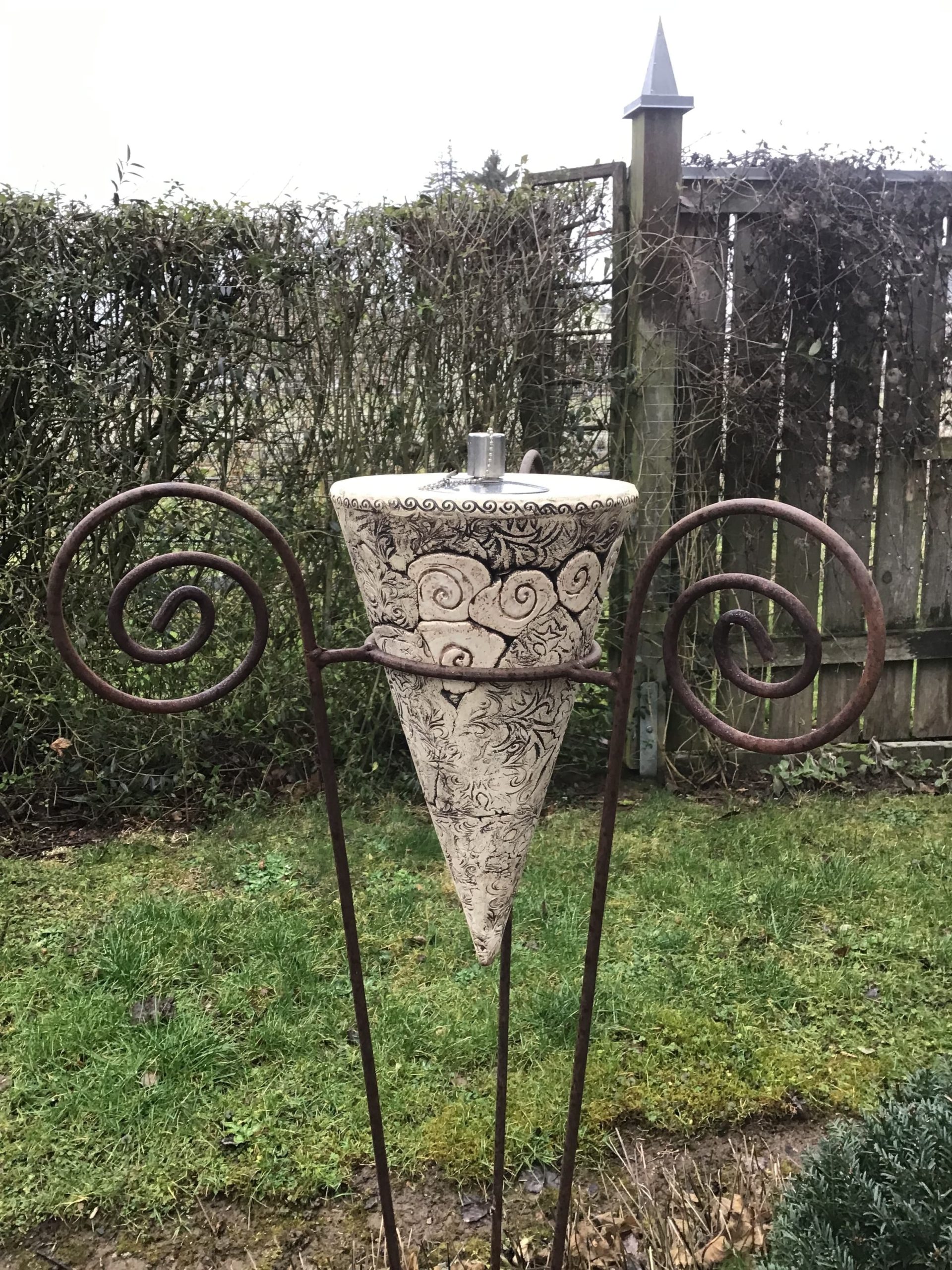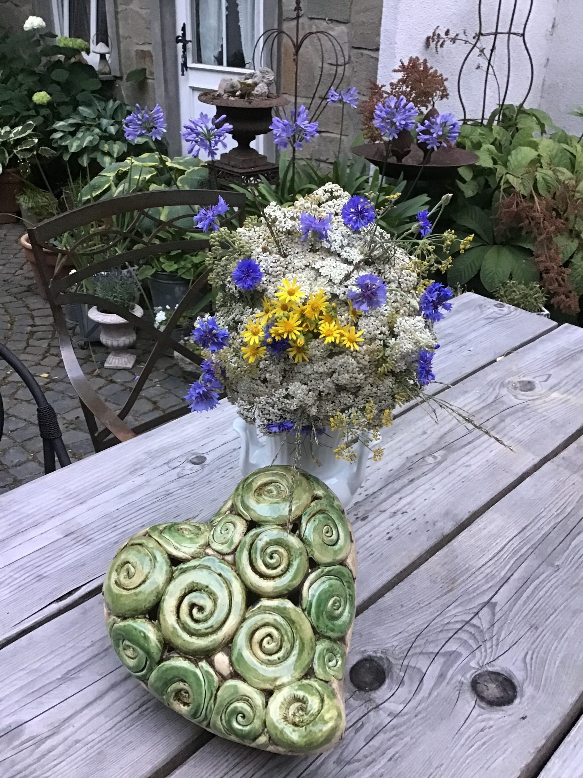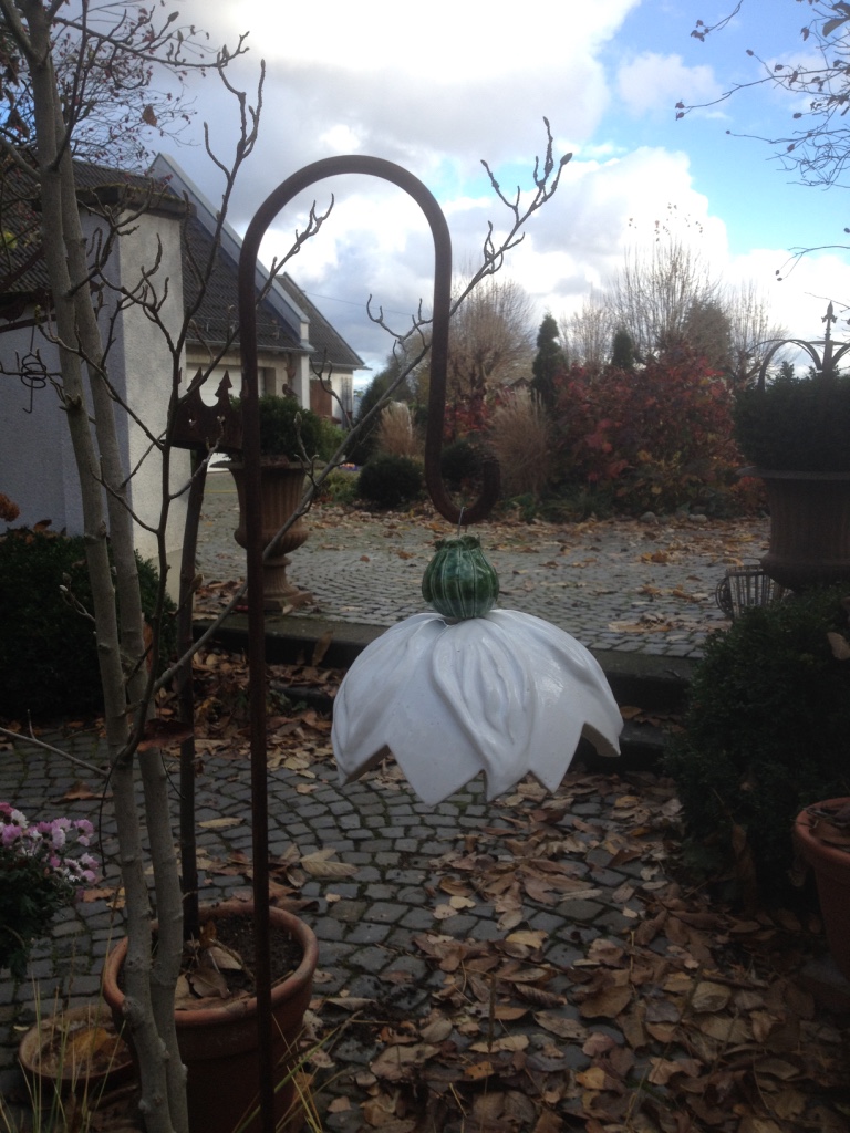 Schon sehr lange begeistert mich das kreative Gestalten mit dem Werkstoff Ton. Immer mal wieder besuchte ich schon in jungen Jahren Töpferkurse bei der VHS, konnte dadurch meine handwerklichen Fähigkeiten verfeinern, vieles dazulernen, was am Ende meine Kreativität noch beflügelte. Meine Arbeit im Garten, an der frischen Luft und in der Natur geben mir ständig neue Inspirationen, die nach Umsetzung rufen und gerne von mir erhört werden.Sehr oft trifft dabei meine fertige Töpferarbeit auf die Materialien Holz und Eisen, dessen Verbindung ich besonders spannend finde. Hier erhalte ich Unterstützung von meinem Mann, der die beiden Werkstoffe Holz und Metall gerne verarbeitet.