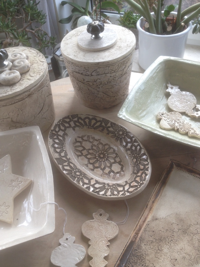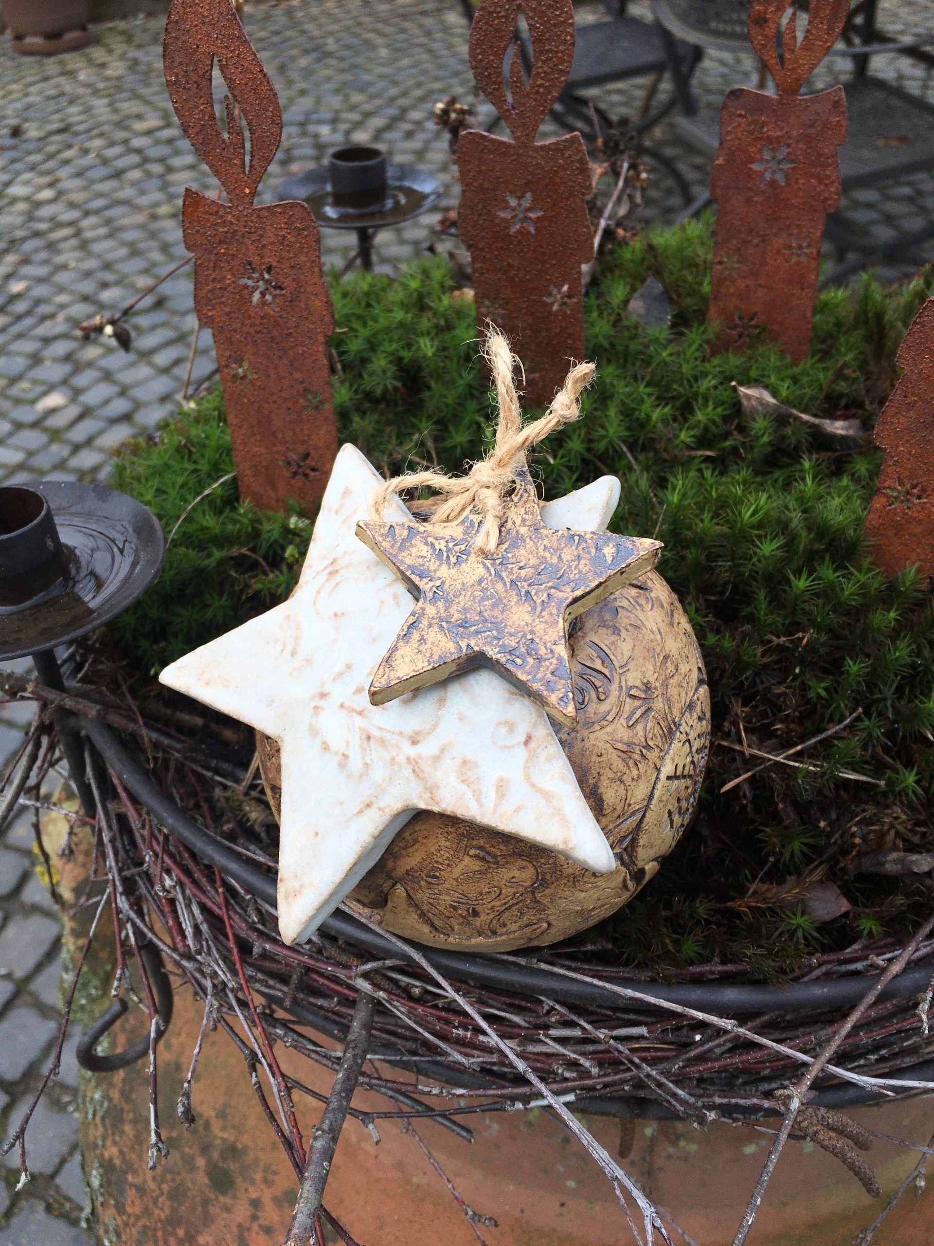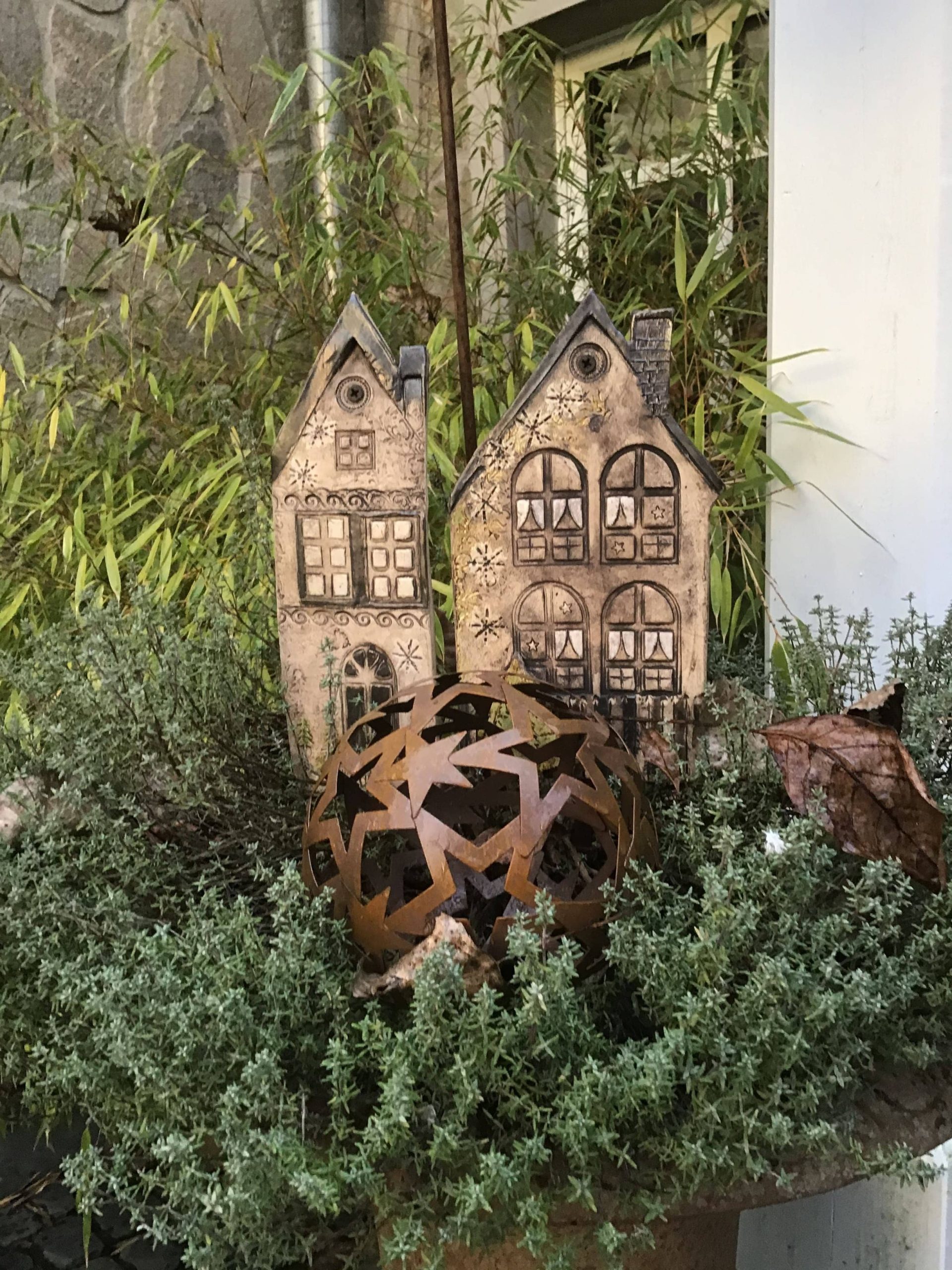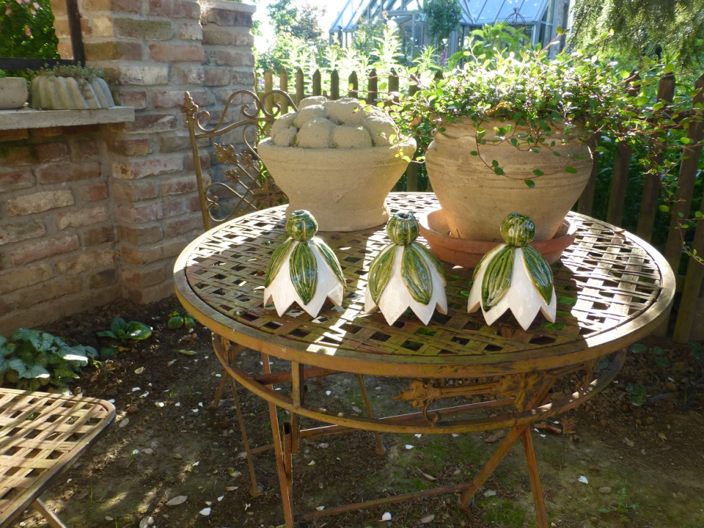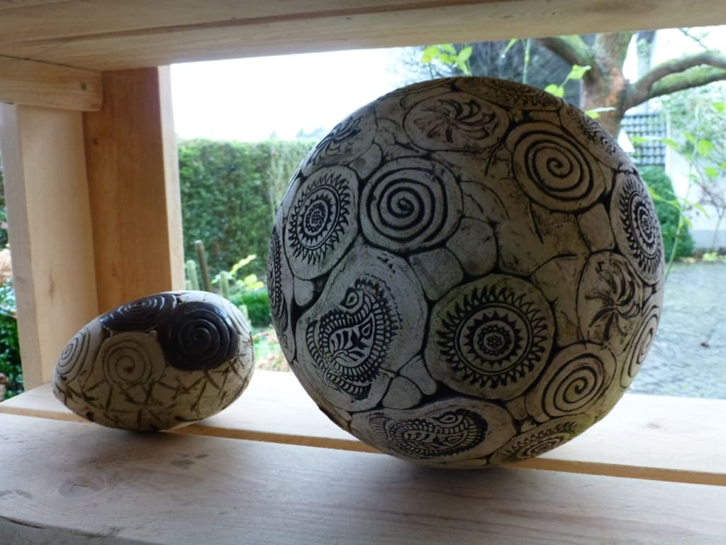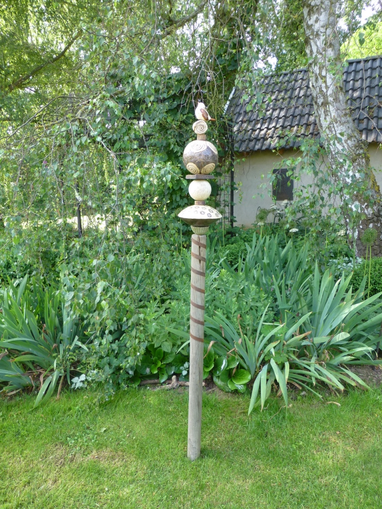 Schon sehr lange begeistert mich das kreative Gestalten mit dem Werkstoff Ton. Immer mal wieder besuchte ich schon in jungen Jahren Töpferkurse bei der VHS, konnte dadurch meine handwerklichen Fähigkeiten verfeinern, vieles dazulernen, was am Ende meine Kreativität noch beflügelte. Meine Arbeit im Garten, an der frischen Luft und in der Natur geben mir ständig neue Inspirationen, die nach Umsetzung rufen und gerne von mir erhört werden.Sehr oft trifft dabei meine fertige Töpferarbeit auf die Materialien Holz und Eisen, dessen Verbindung ich besonders spannend finde. Hier erhalte ich Unterstützung von meinem Mann, der die beiden Werkstoffe Holz und Metall gerne verarbeitet.
