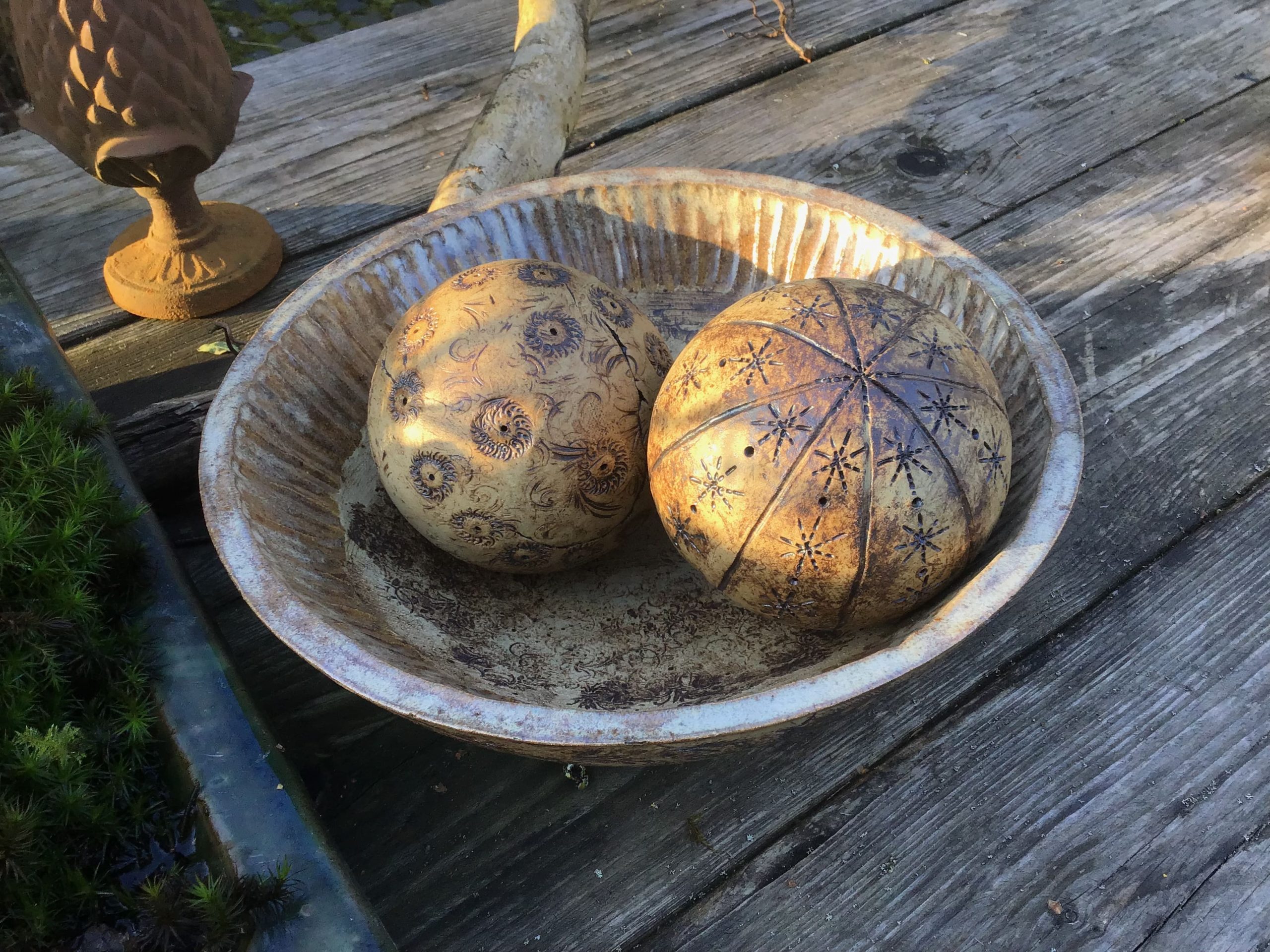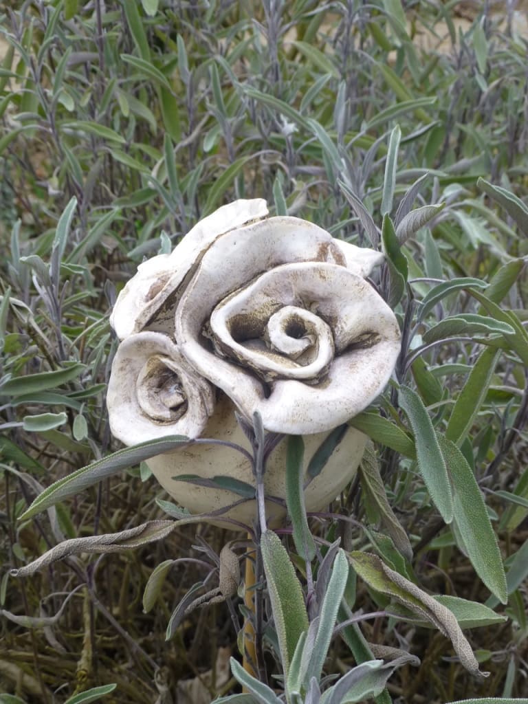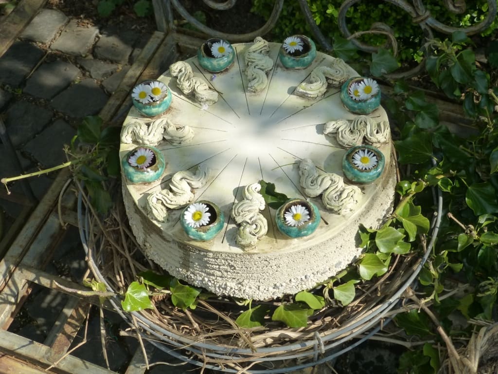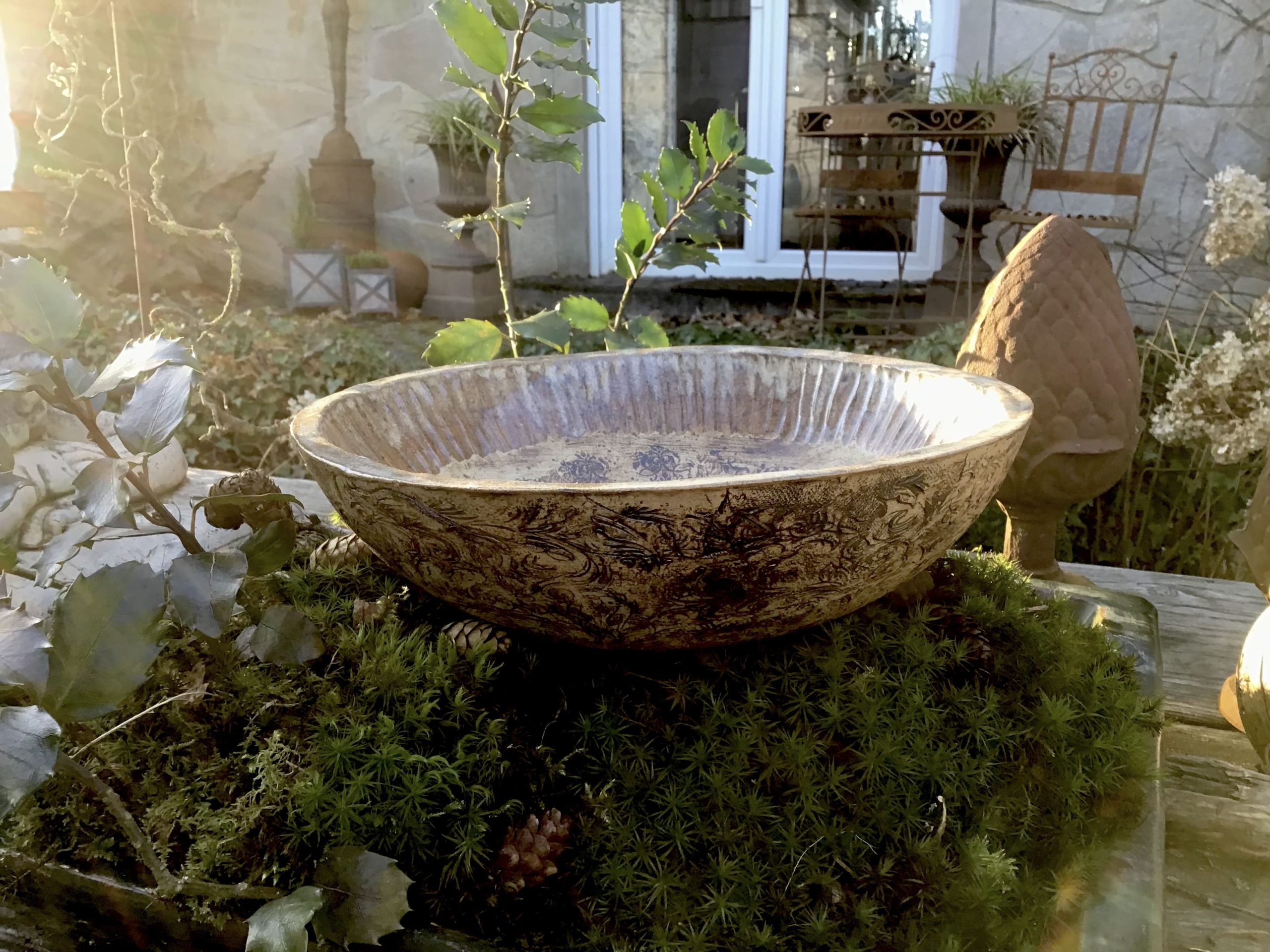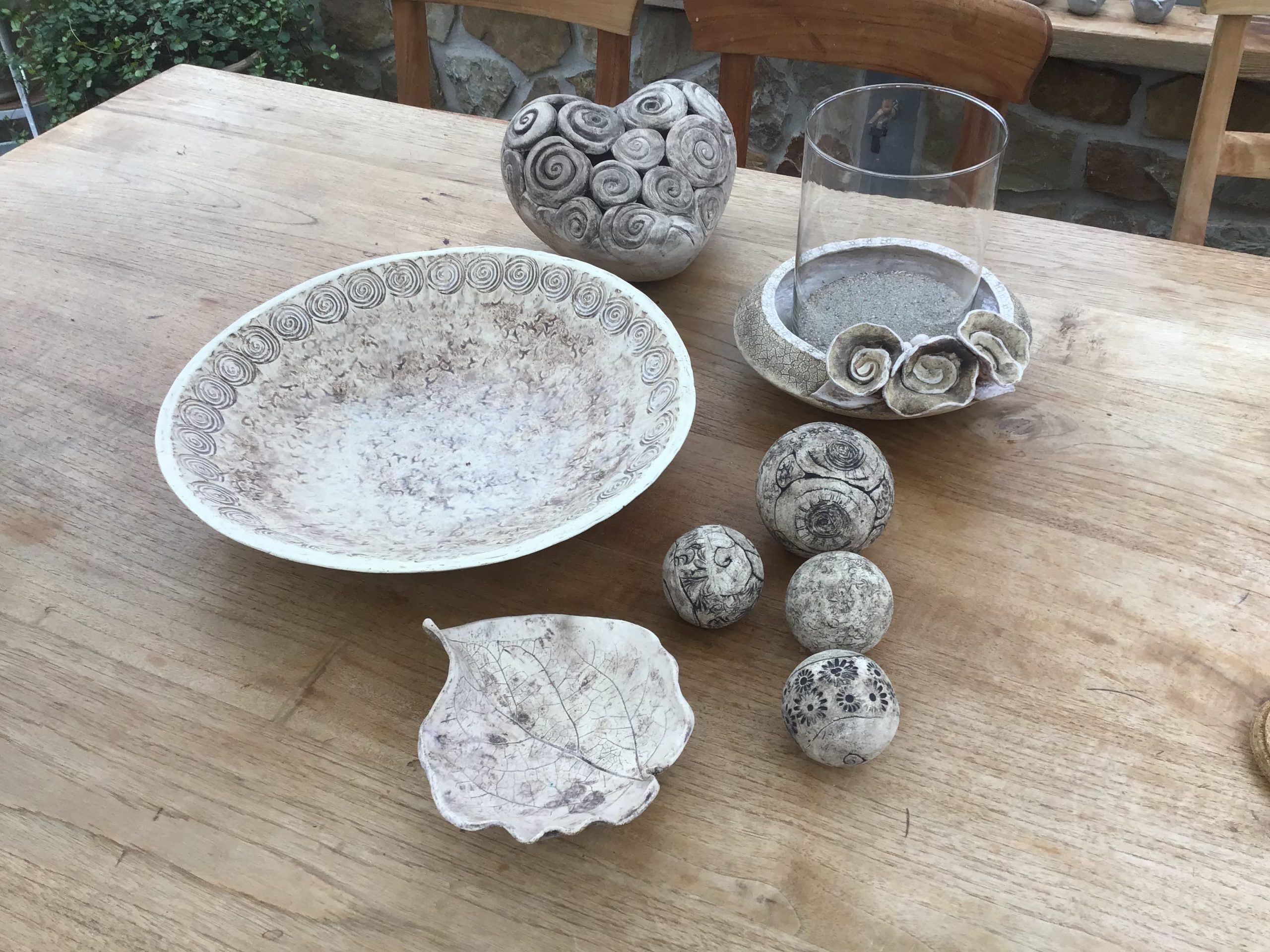 Schon sehr lange begeistert mich das kreative Gestalten mit dem Werkstoff Ton. Immer mal wieder besuchte ich schon in jungen Jahren Töpferkurse bei der VHS, konnte dadurch meine handwerklichen Fähigkeiten verfeinern, vieles dazulernen, was am Ende meine Kreativität noch beflügelte. Meine Arbeit im Garten, an der frischen Luft und in der Natur geben mir ständig neue Inspirationen, die nach Umsetzung rufen und gerne von mir erhört werden.Sehr oft trifft dabei meine fertige Töpferarbeit auf die Materialien Holz und Eisen, dessen Verbindung ich besonders spannend finde. Hier erhalte ich Unterstützung von meinem Mann, der die beiden Werkstoffe Holz und Metall gerne verarbeitet.
